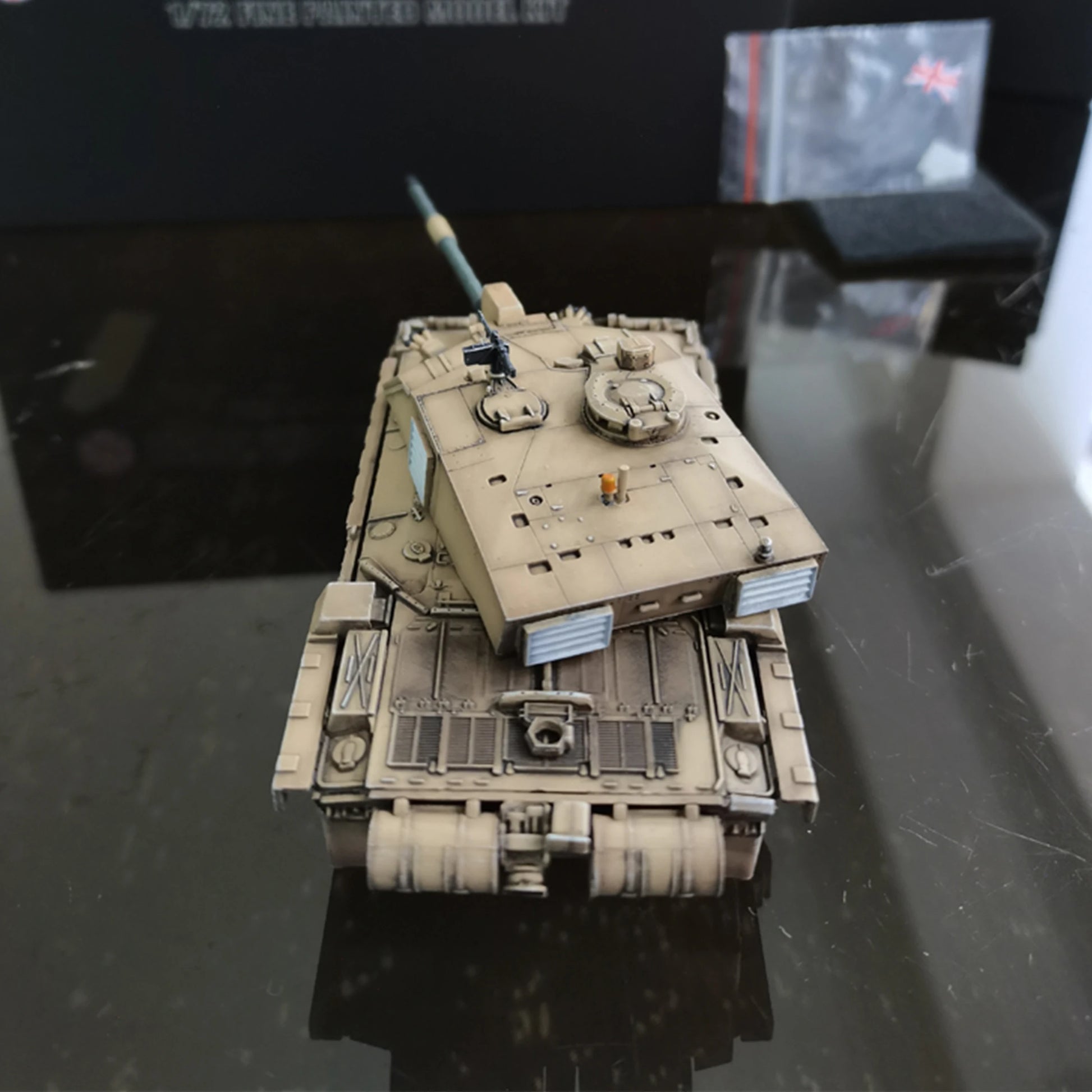 Miniatura premium del tanque Challenger 2 1:72, con torre giratoria, cañón ajustable y pintura de desierto detallada, perfecta para coleccionistas exigentes.